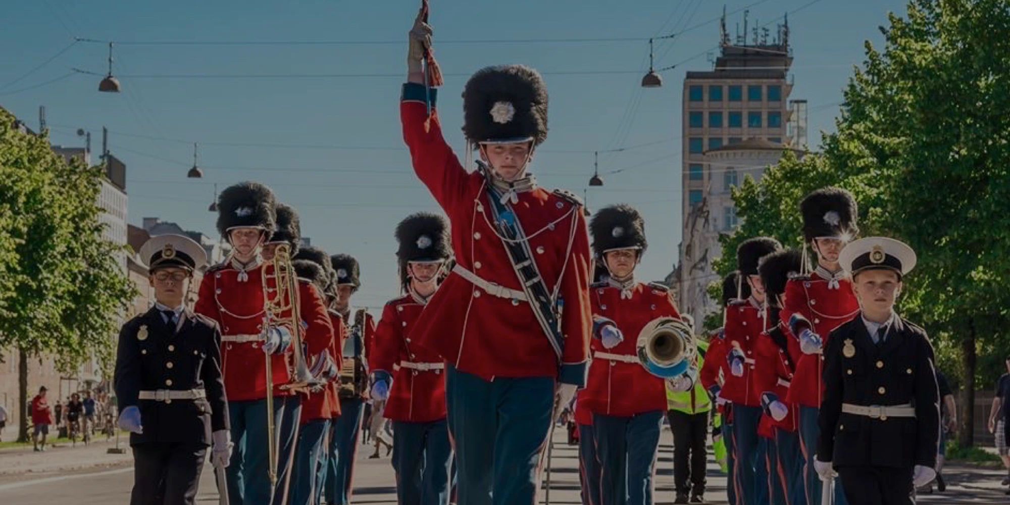Garden optræder i en tro kopi af Den Kongelige Livgardes gallauniform, med røde jakker, blå bukser samt bjørneskindshuer.